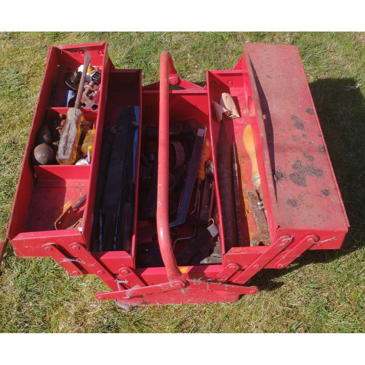 FOR THE BUDDING DIY ENTHUSIAST - OR NOT! Red metal expanding toolbox with small collection of tools
