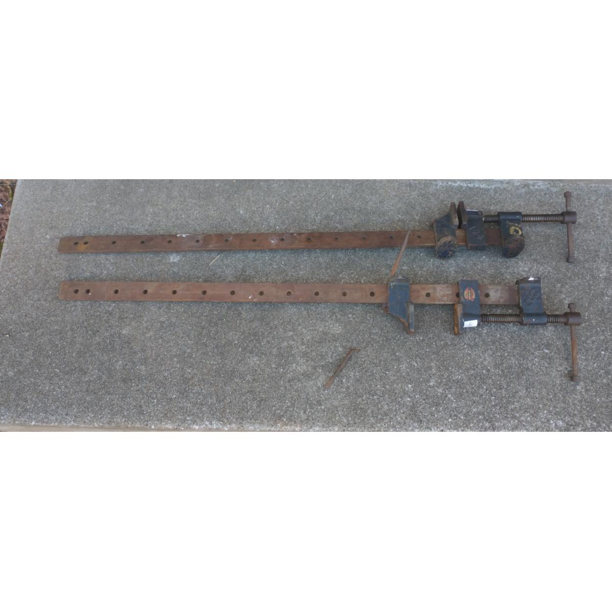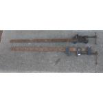 A PAIR OF WOODEN circa 1950's? maker bench clamps 90cm long - lovely condition ( stored up in a loft for 40 years