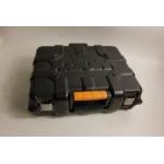 An old TRADESMAN'S carpenter carry tool tidy box with a couple of chisels and a ROBINSON HALL maker line marker