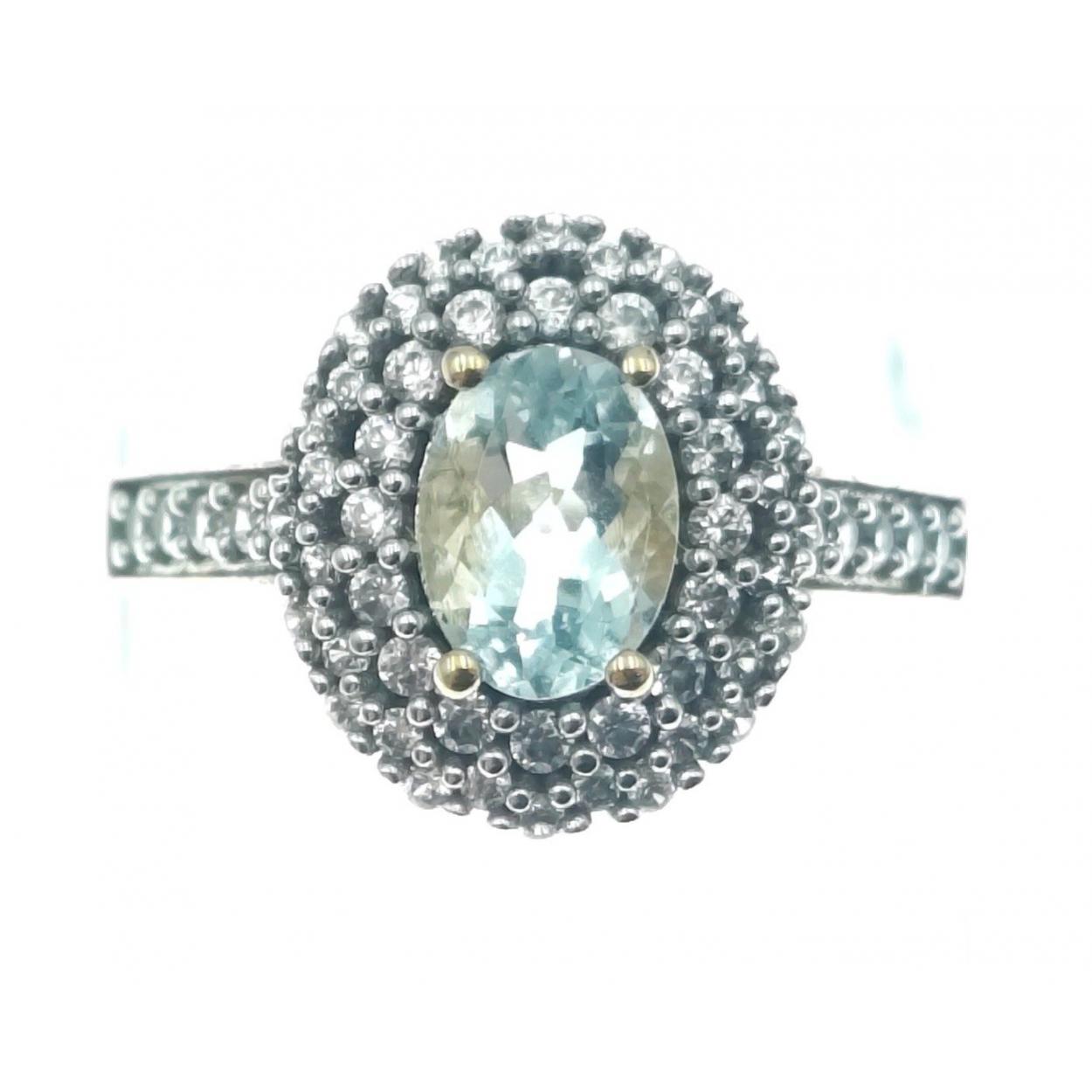 GEMPORIA Santa Maria Brazilian Aquamarine & white Zircon 9ct gold ring. Size L/M 1ct. Gross weight 2.78g approx. Complete with Gemporia certificate card.