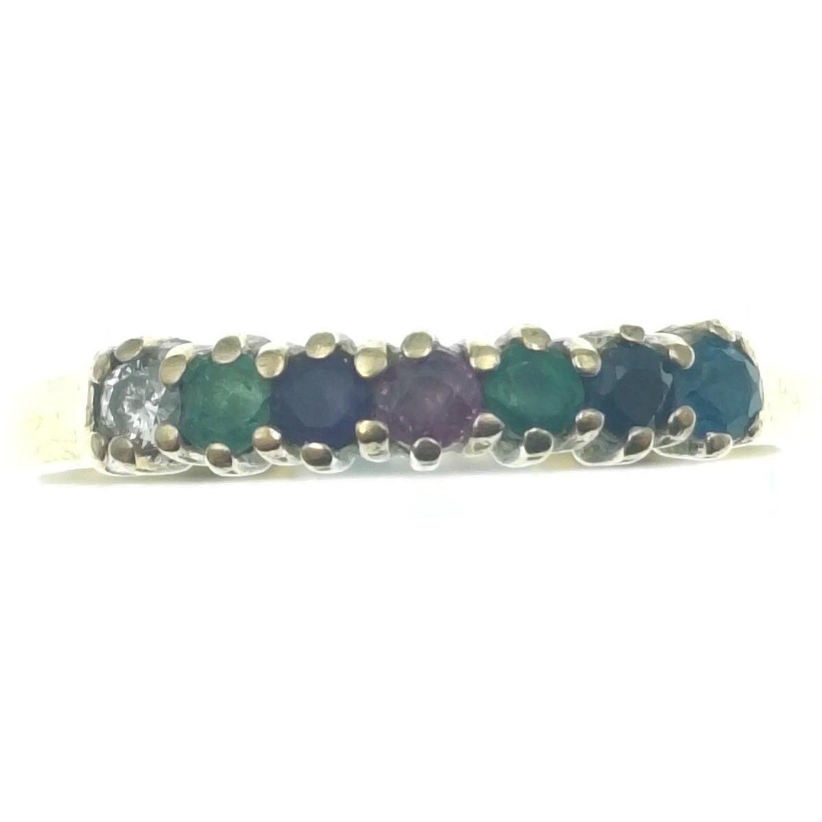 A 9ct D.E.A.R.E.S.T. Seven stone ring. Size T, gross weight 2.27g approx. A very pretty ring.
