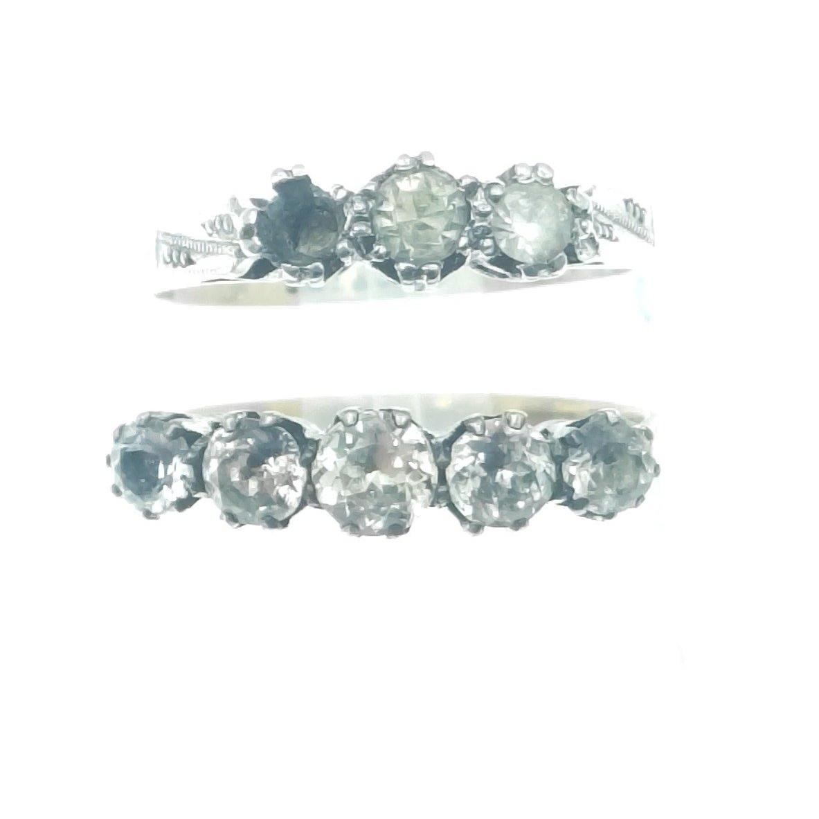 Two 9ct & silver rings with one stone missing, not diamonds, One size L, the other size M