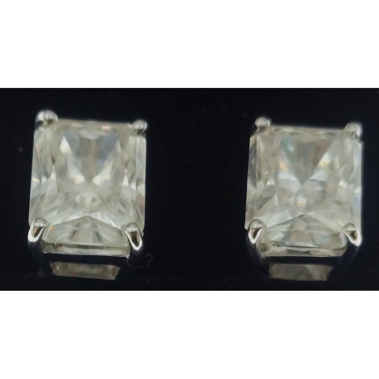 DIAMONDS ARE FOREVER! - A STUNNING pair of emerald-cut diamond stud earrings measuring 2ct each approx - 9mm diameter x 3.5mm depth approx each - on unmarked white metal which independently jewellers tests as 9ct - gross weight 3.05g approx