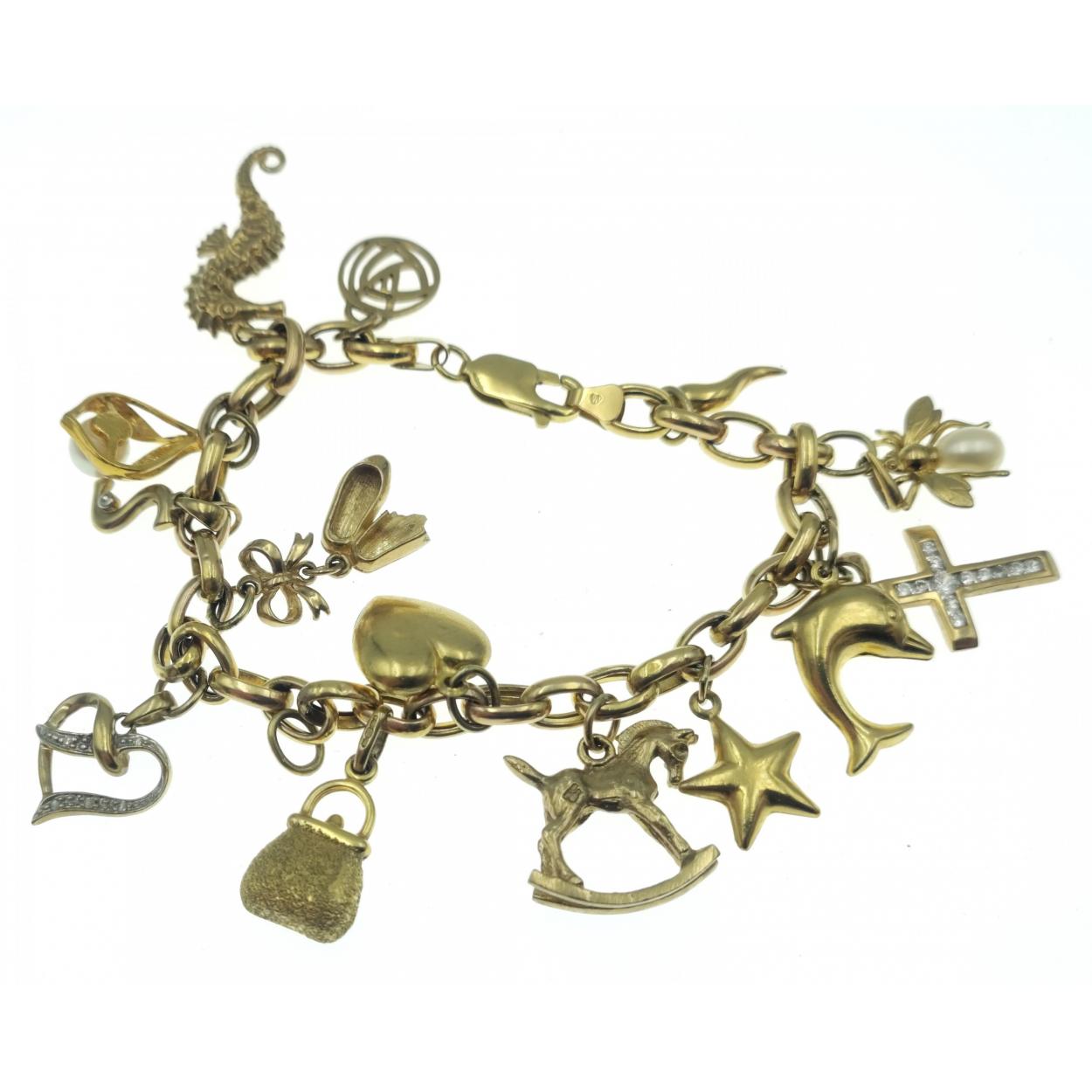 A cracking STERLING SILVER charm bracelet with 17 charms!! Lion, Pram, Lamp, Sailing ship (opens), Cat, Slippers, Horse, Cat, Skier in opening cable car, Ladle, Church (opens), Wishing Well, Womble, Car lamp, Pub (opens), Alarm Clock, Fish and rings. Total gross weight 80.9g approx