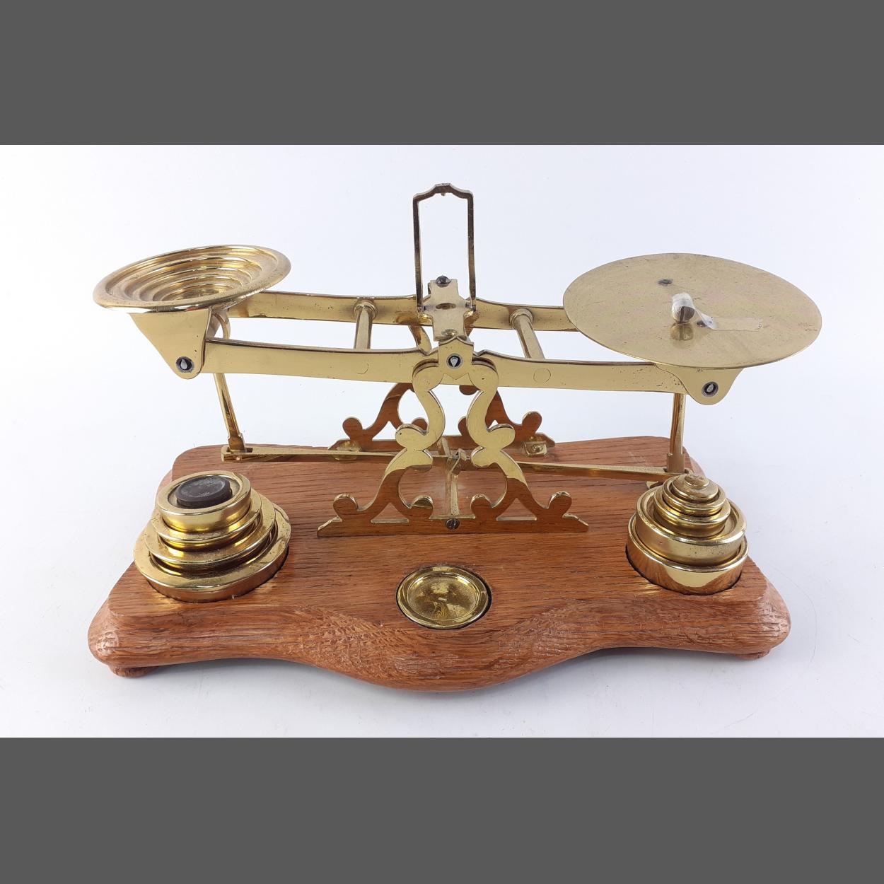 A beautiful set of J&E Ratcliff brass postal scales with weights. Lovely condition.