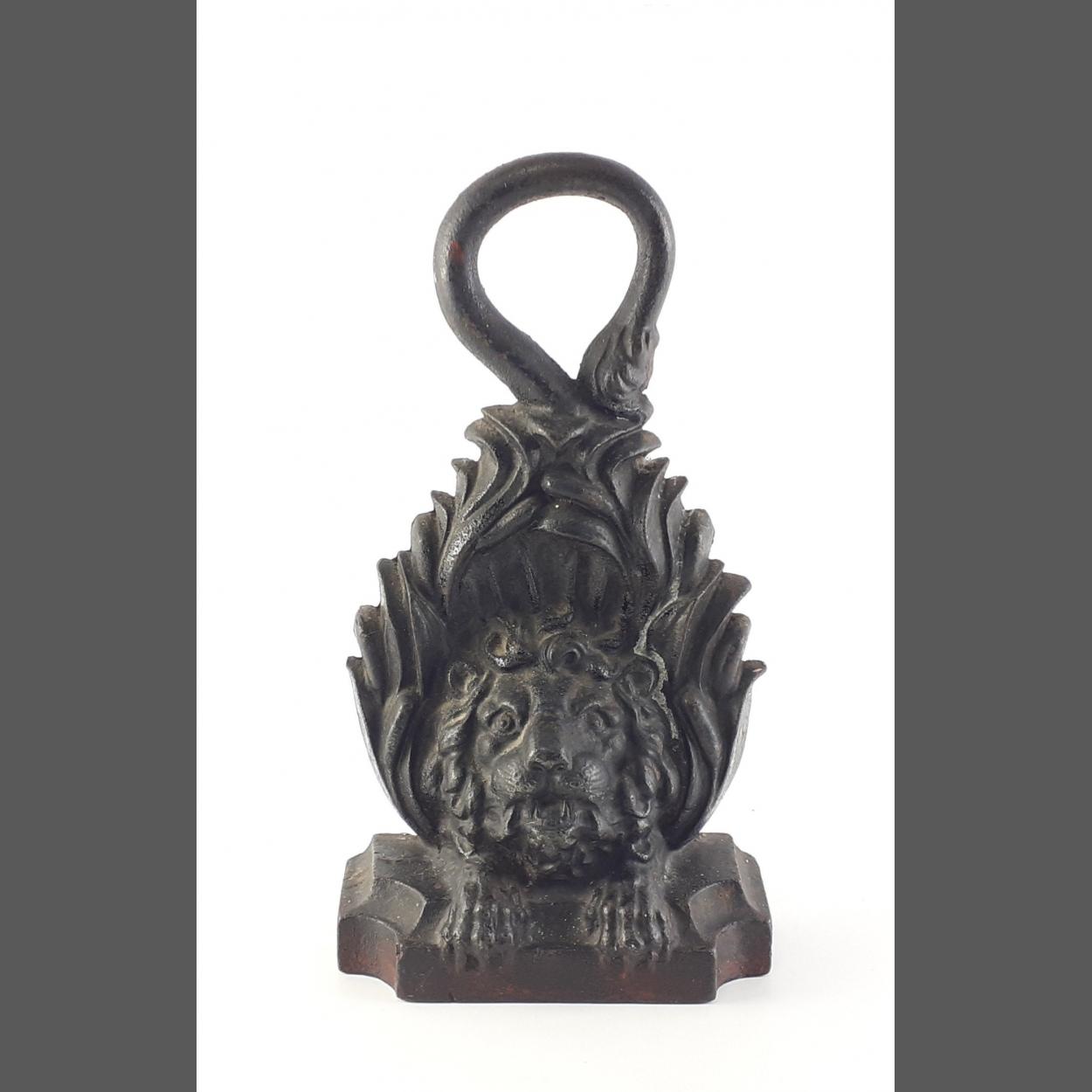 An attractive Victorian heavy lion cast metal door stop 29cm tall 17cm wide in good used condition
