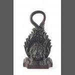 A superb antique brass tobacco leaf cutter in patinated condition. 35cm approx.