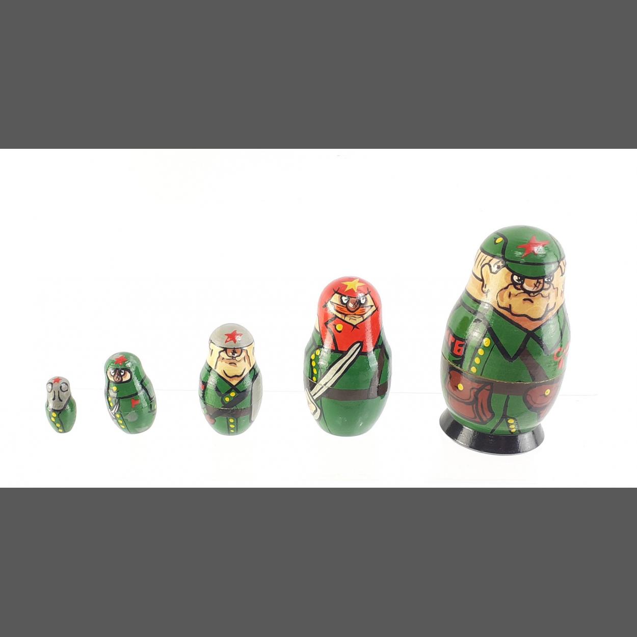 A set a five small Russian communist comic nesting dolls in good condition.