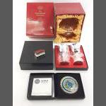 Nice little lot of decorative items. To include Bohemia cristal lidded dish in box, two plated goblets, a Sipan Peru reproduction royal ornament and a plated small pill box.