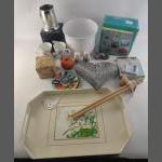 Mixed lot to include SONA tea pot, wooden trays, table lamp