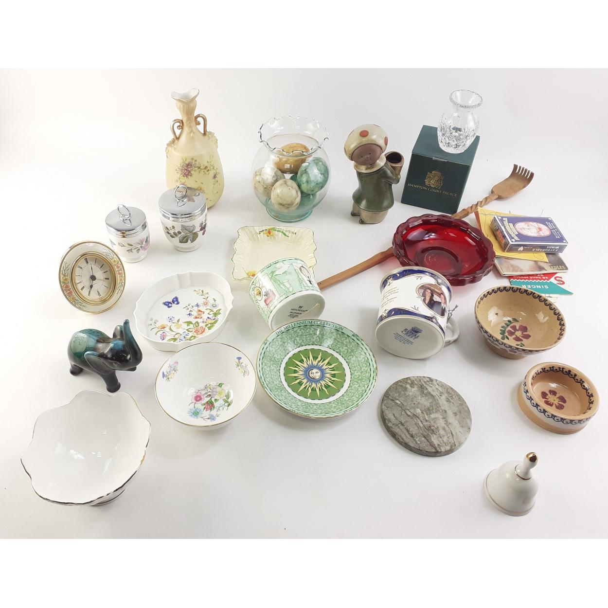 Mixed ornamental lot. To include polished egg stones, Meakin dish, glass bowls and much else.