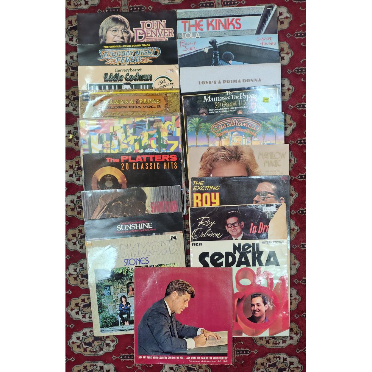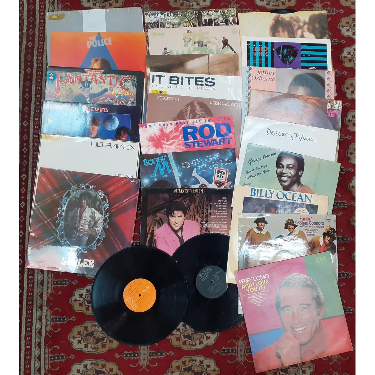 Collection of 46 approx LP's to include GLEN MILLER A Memorial 1944-1969 - also The GLEN MILLER STORY, FRANK SINATRA Only The Lonely Cover torn at the rear) also Come Fly With Me x2qty, - also Sinatra Sings Music For Pleasure, also Greatest Hits Vol ll, Look Over Your Shoulder, Nice N easy, The Select Cole Porter, (no sleeve), BING CROSBY Old Masters also Classics, MAURICE CHEVALIER sings Broadway, PAUL ROBESON The Golden Age...., NAT KING COLE Ramblin Rose cover only and The Encore Album, The Best OF CARUSO, MARIO LANZA with Orchestra and Chorus, DUKE ELLINGTON Hail To The Duke, The Mikado, PAUL ROBESON with Chorus and Orchestra, HIGH SOCIETY, MY FAIR LADY, GEORGE MITCHELL MINSTRELS Black And White Minstrel Show also From Another Black and White Minstrel Show, DANNY KAYE & LOUIS ARMSTRONG The Five Pennies, DEAN MARTIN Dino, SHIRLEY BASSEY Stops The Shows, The BEST OF BARBER & BILK, RUPERT and the FIRE BIRD, OKLAHOMA with Nelson Eddy, MY FAIR LADY with LOLA FISHER, RUDDIGORE Gilbert & Sullivan and lastly FRANK IFIELD Born free. - also a selection of 8 x 33's to include JIMMY SHAND, MANTOVANI x 3qty.