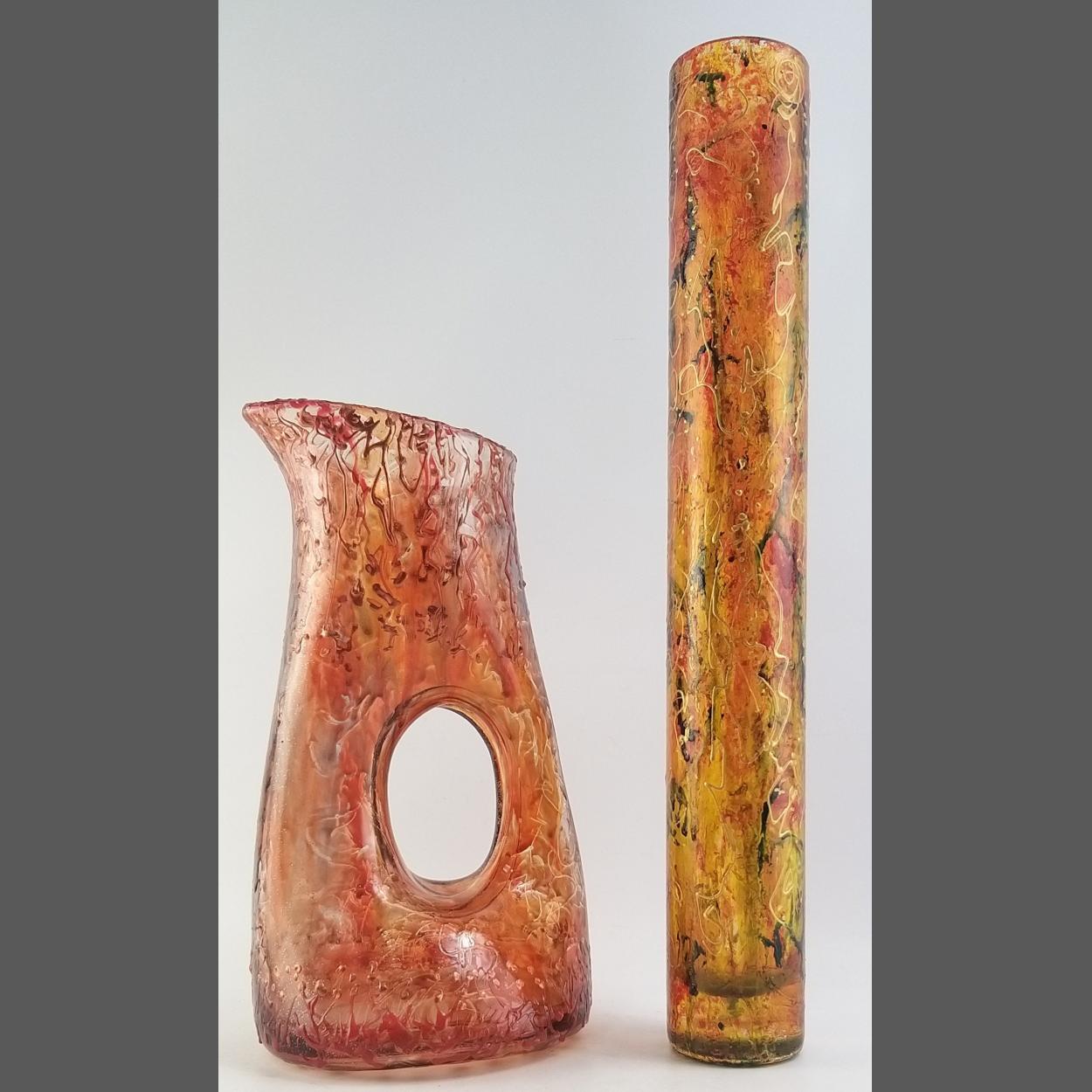 Two super ART GLASS modern volcanic lava style pieces. The tallest 42cm. Both in good condition, one with Polish lable.
