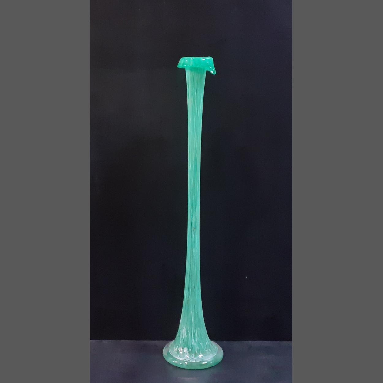 Tall green glass frond vase. 84cm tall, displays well and looks great in a conservatory etc.