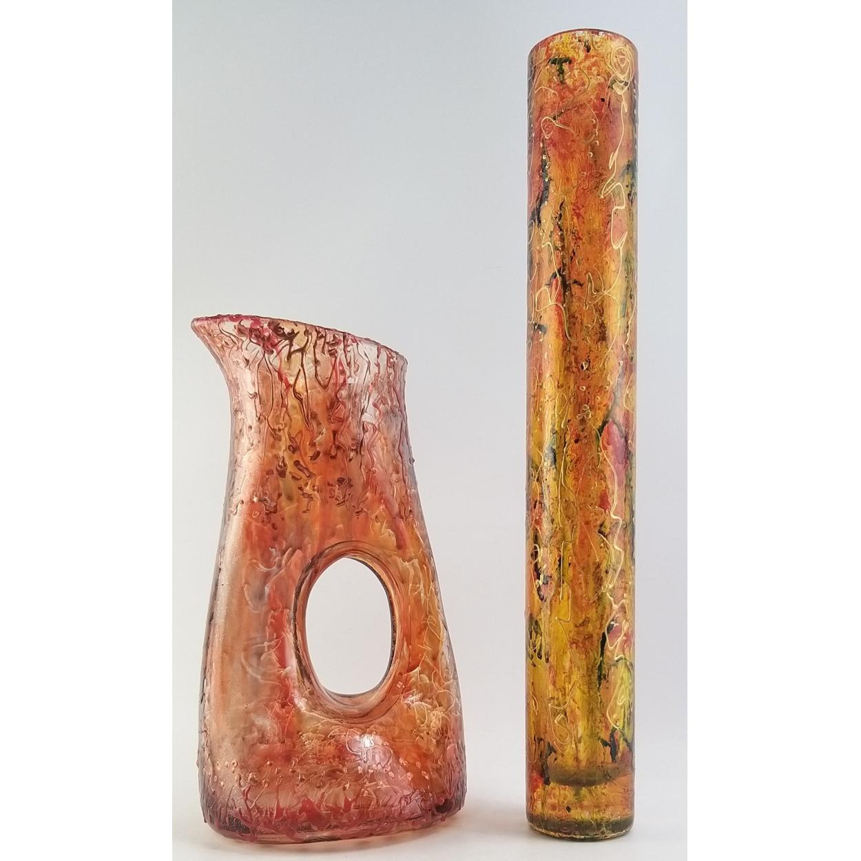Two super ART GLASS modern volcanic lava style pieces. The tallest 42cm. Both in good condition, one with Polish lable.