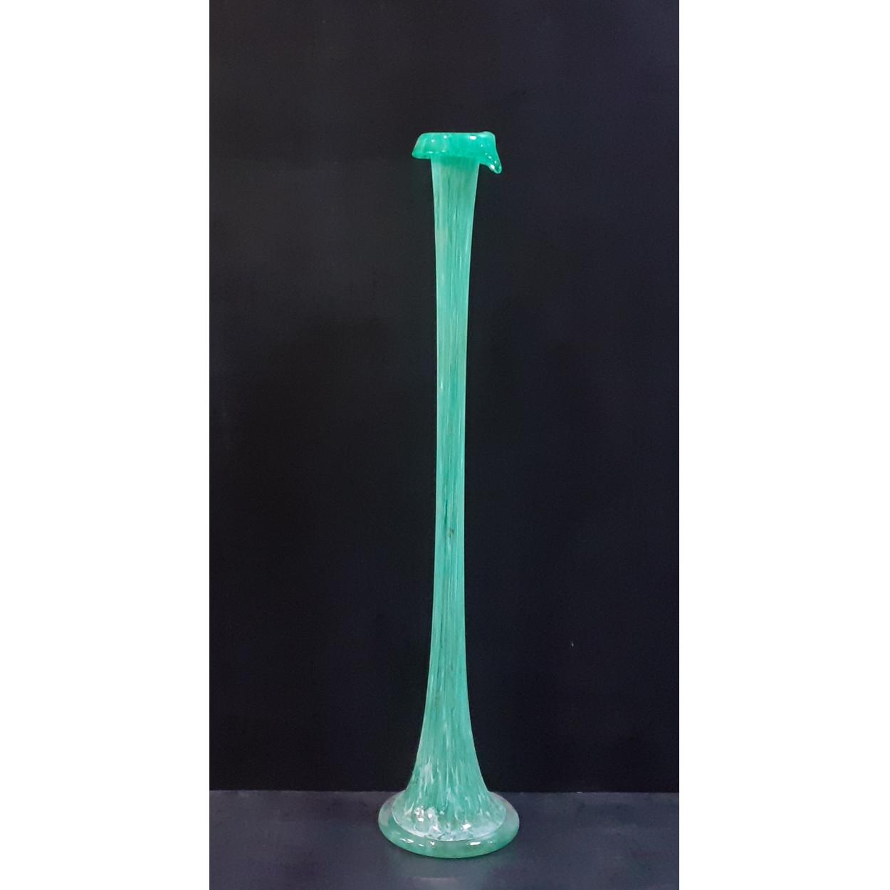 Tall green glass frond vase. 84cm tall, displays well and looks great in a conservatory etc.