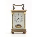 A RAPPORT 8 Day brass carriage clock with pendulum and built in winder on Schmid-tischuhr West German mechanical movement with bell chime. Working well at valuation.