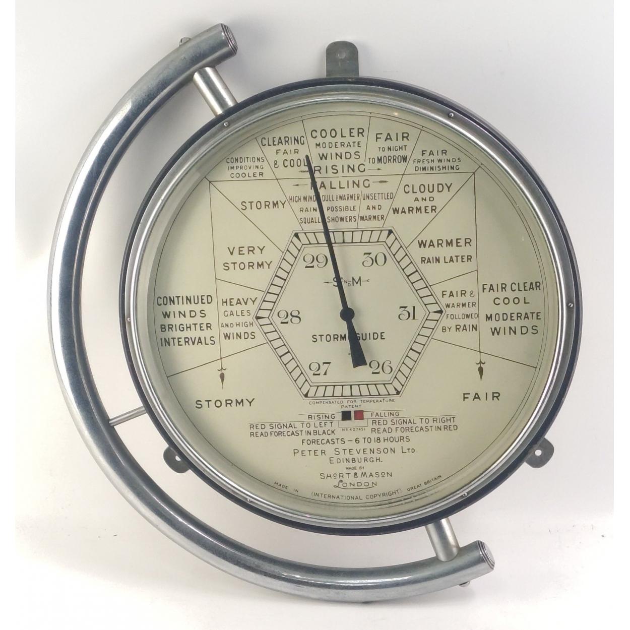 Art deco style shop display Aneroid Barometer made by Short & Mason of London and carrying Edinburgh Retailer Peter Stevenson mark. Dial is 34cm in diameter and thrpoome mount is in good condition.