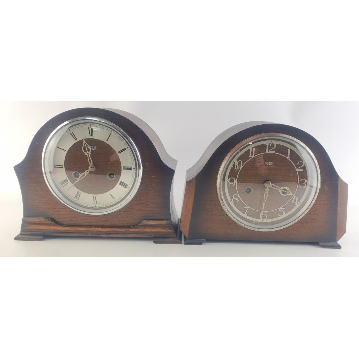 Two SMITHS ENFIELD Wooden mantle clocks with pendulum and keys in over all good condition