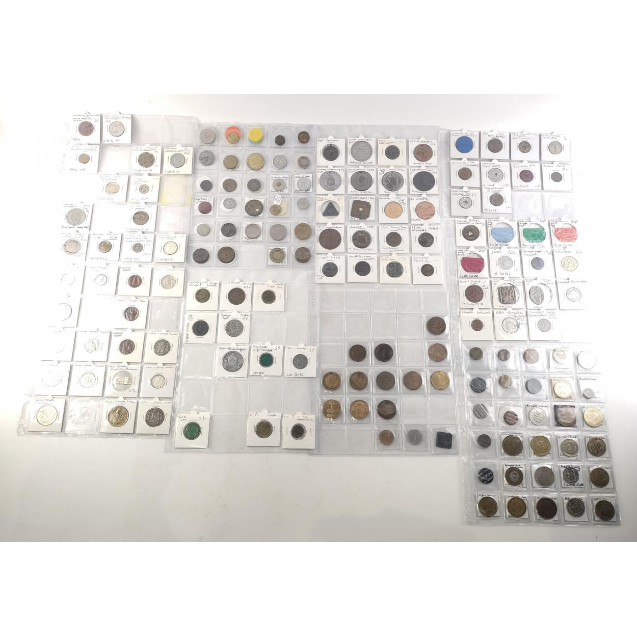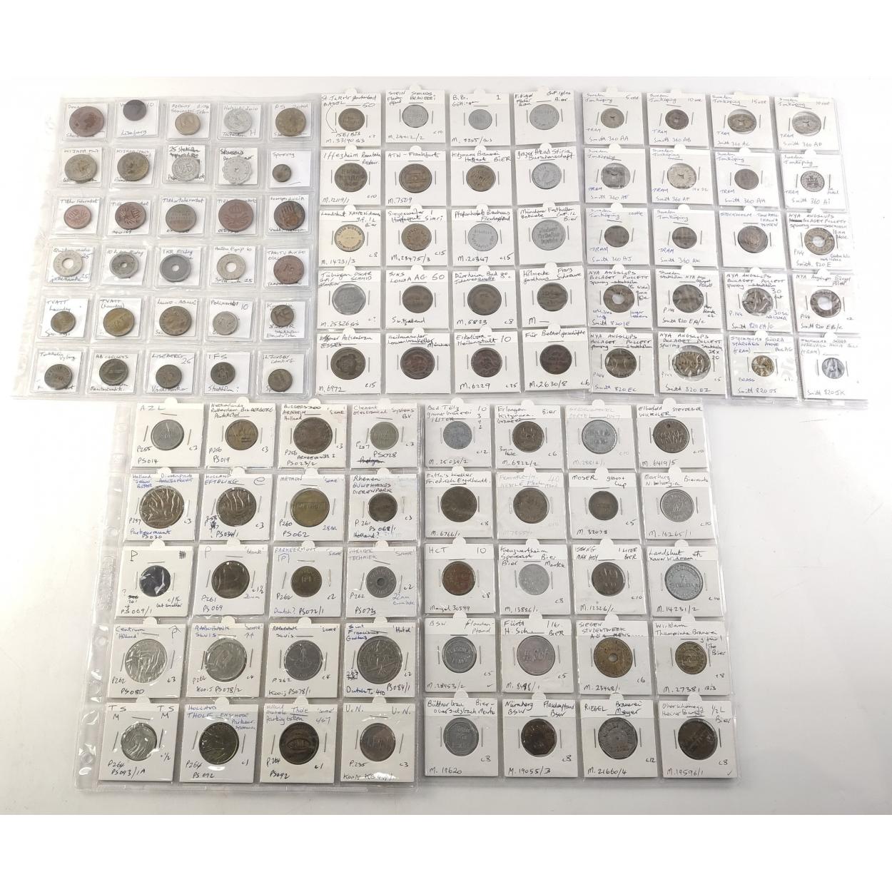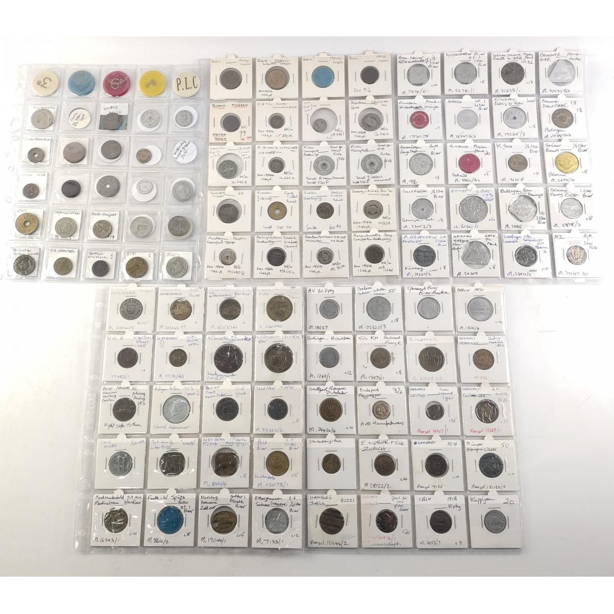 TOKENS Over 100 assorted European trade and transit tokens Russia, Germany, German States, Sweden, some German Bier Marke noted. A nice collection in sleeves.