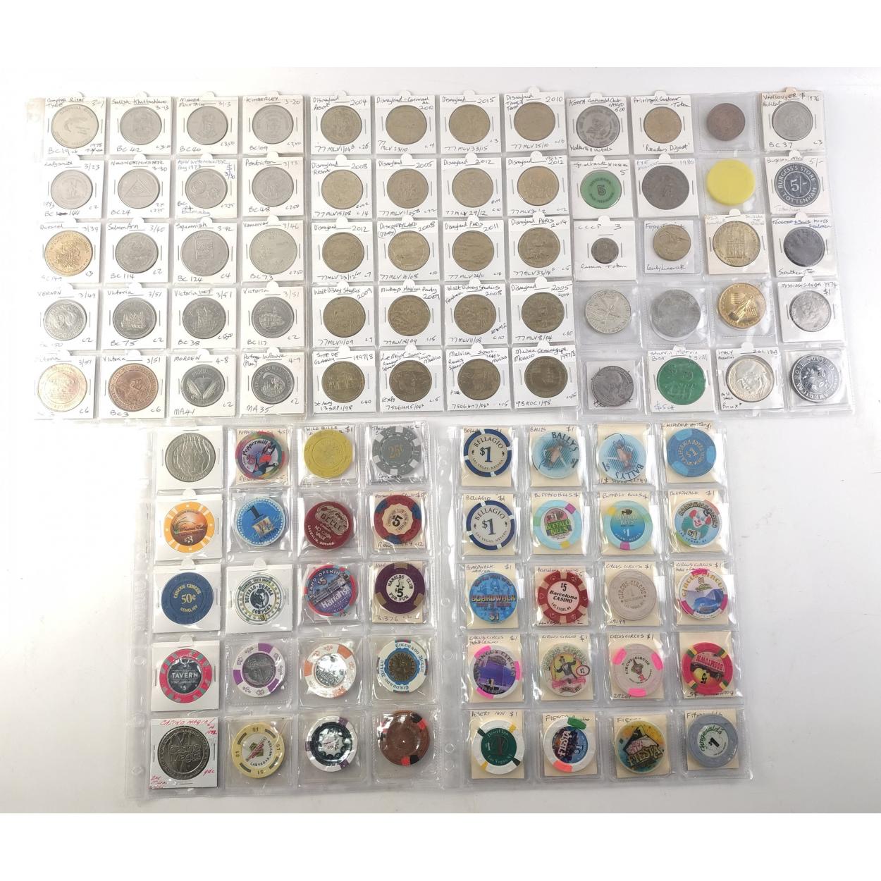 TOKENS 100 mainly USA / CANADA interest tokens in sleeves. Casinos, Disneyland and many others.