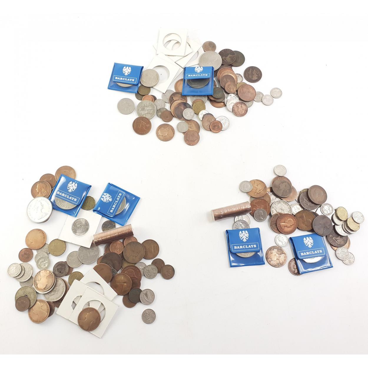 Three small tubs of assorted world coins including 1840 Nova Scotia Halfpenny and other Victorian copper coinage. An interesting wee lot, includes some modern Crowns.