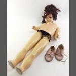 An antique bisque head doll in a distressed state. in need of TLC. no makers mark.