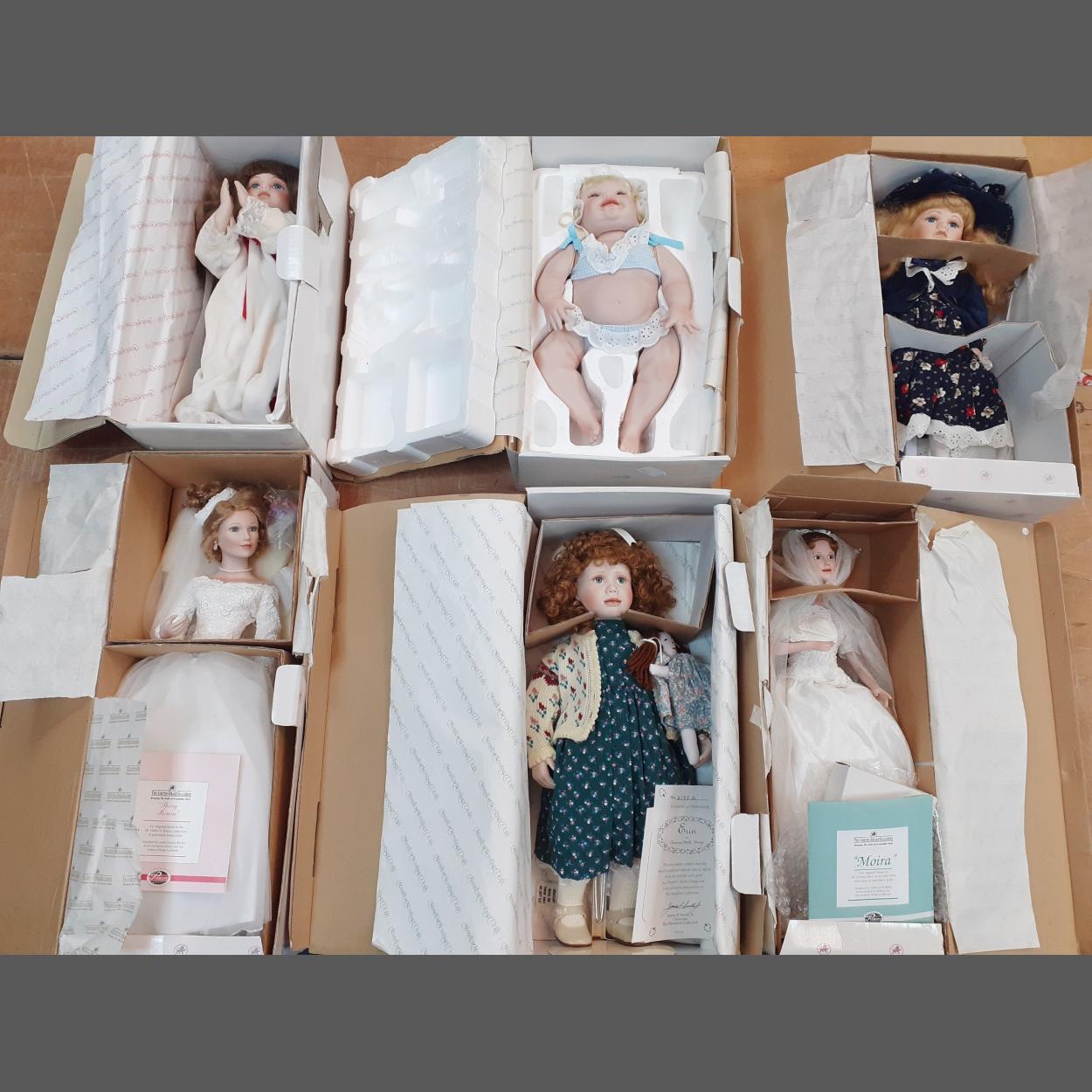 A collection of 6 fine porcelain dolls to include three The Ashton Drake Galleries dolls two Heritage dolls and one hamilton collection all in good condition within original boxes.