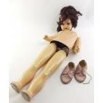 An antique bisque head doll in a distressed state. in need of TLC. no makers mark.