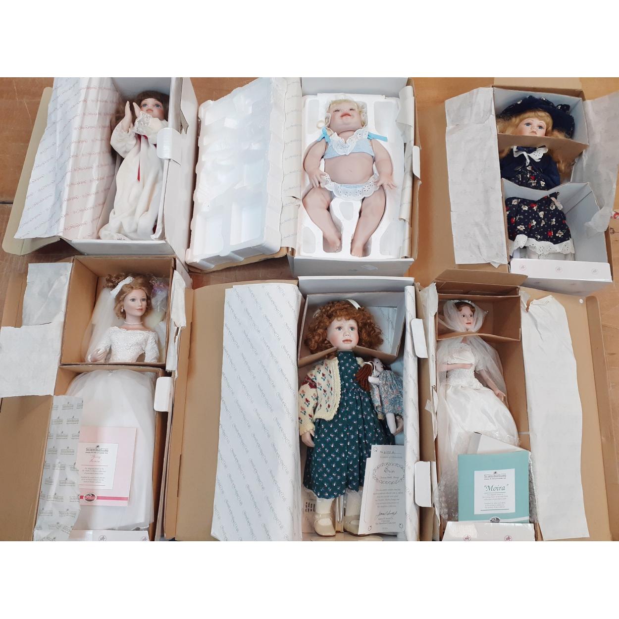 A collection of 6 fine porcelain dolls to include three The Ashton Drake Galleries dolls two Heritage dolls and one hamilton collection all in good condition within original boxes.
