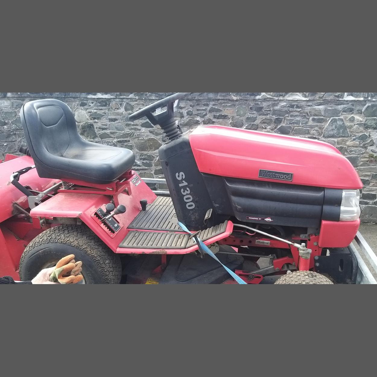 A WESTWOOD S1300 sit-on lawnmower, 1 owner from new, in good working order and recently serviced twice last year at St Boswells Mowers and also Galashiels lawn mower servicing and not used. Comes with a collection box. This is a renowned robust work horse! Runs on unleaded petrol. Ready to Go!!!