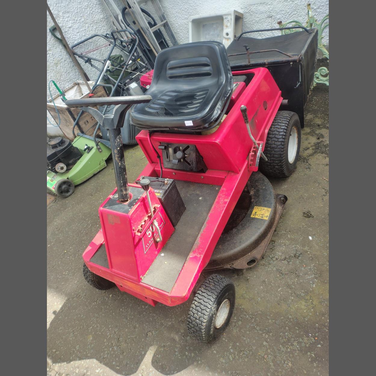 A sit on lawnmower LAWNFLITE 504 11.5hp - Briggs and Stratton engine, requires new battery,(but we managed to jump start it on delivery, check-out the video) Tyres in good condition and may require some attention - comes with grass box - was used till the end of the last season - its a button start no key required.