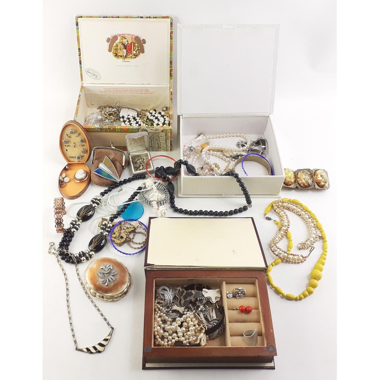 Three good boxes of jewellery. Much of interest, beads, bangles, brooches etc.