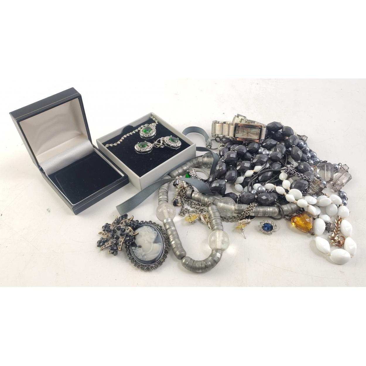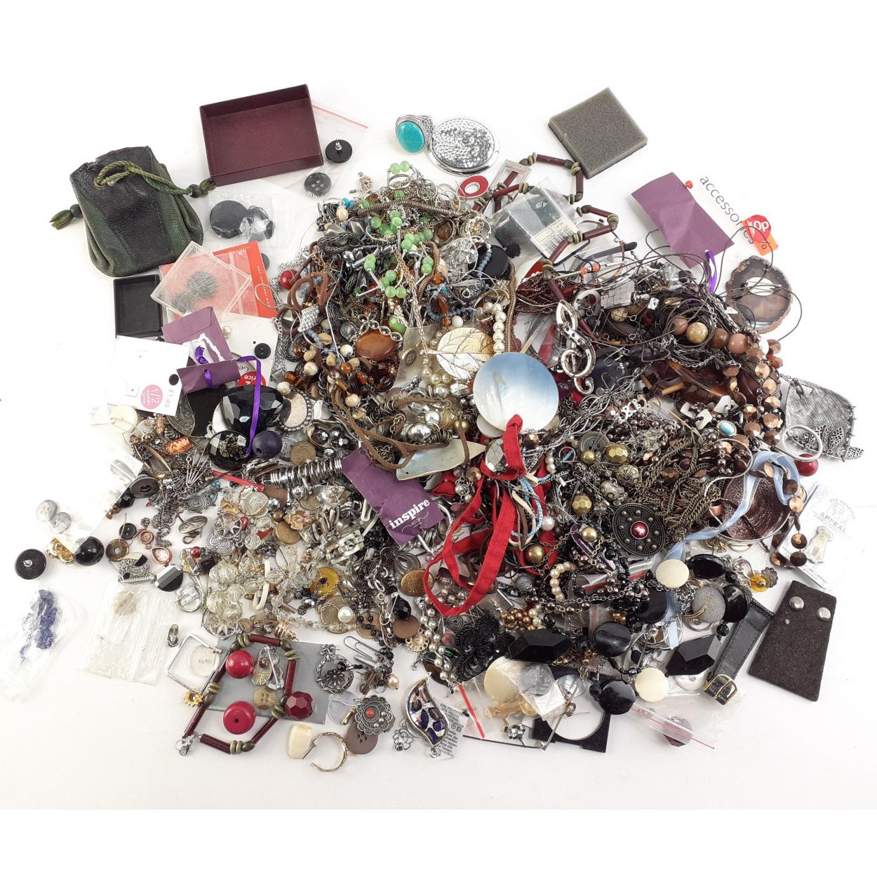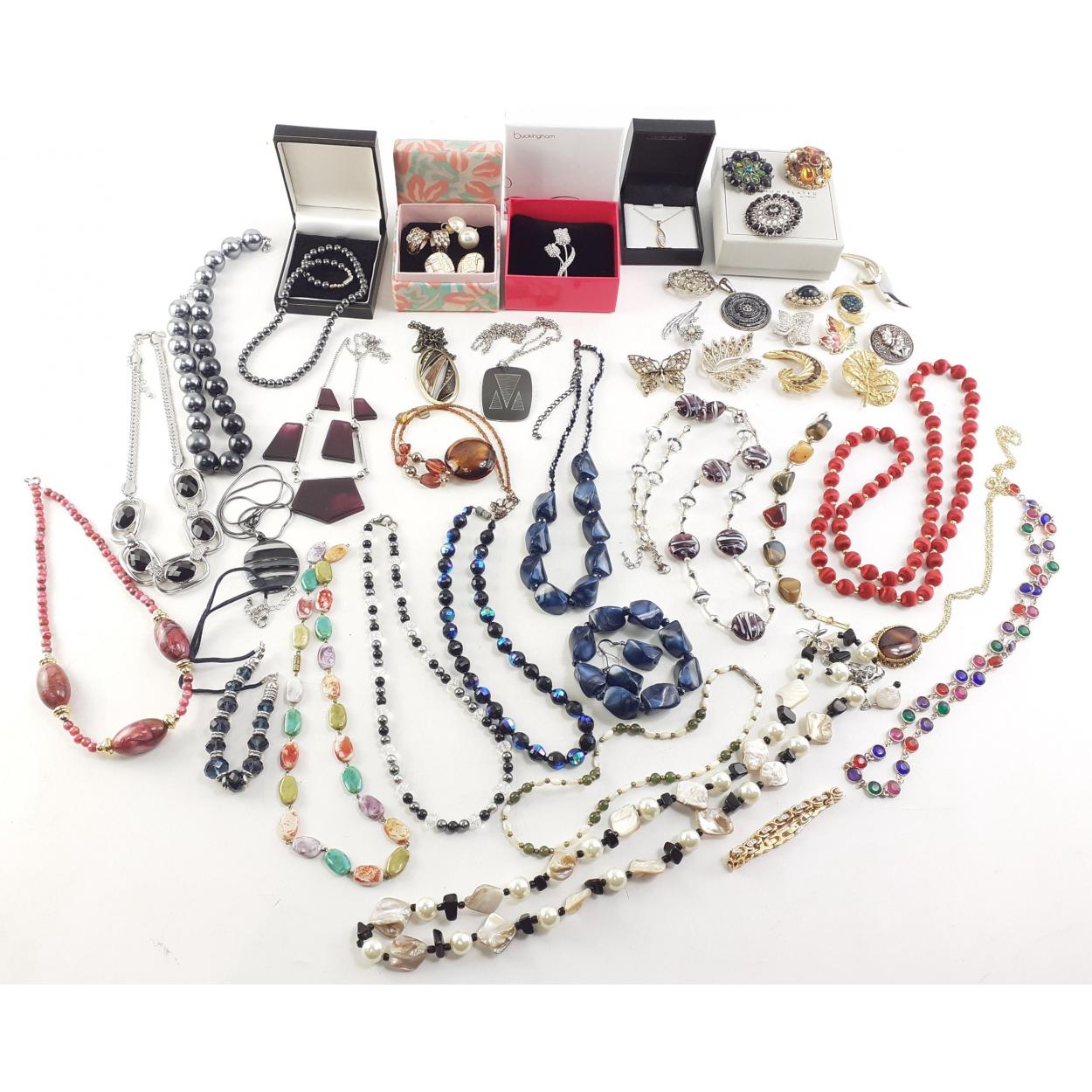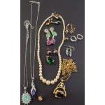A good selection of bijouterie and dress jewellery. Broockhes, buttons, necklaces and other chains, earrings, rings and much else of interest.