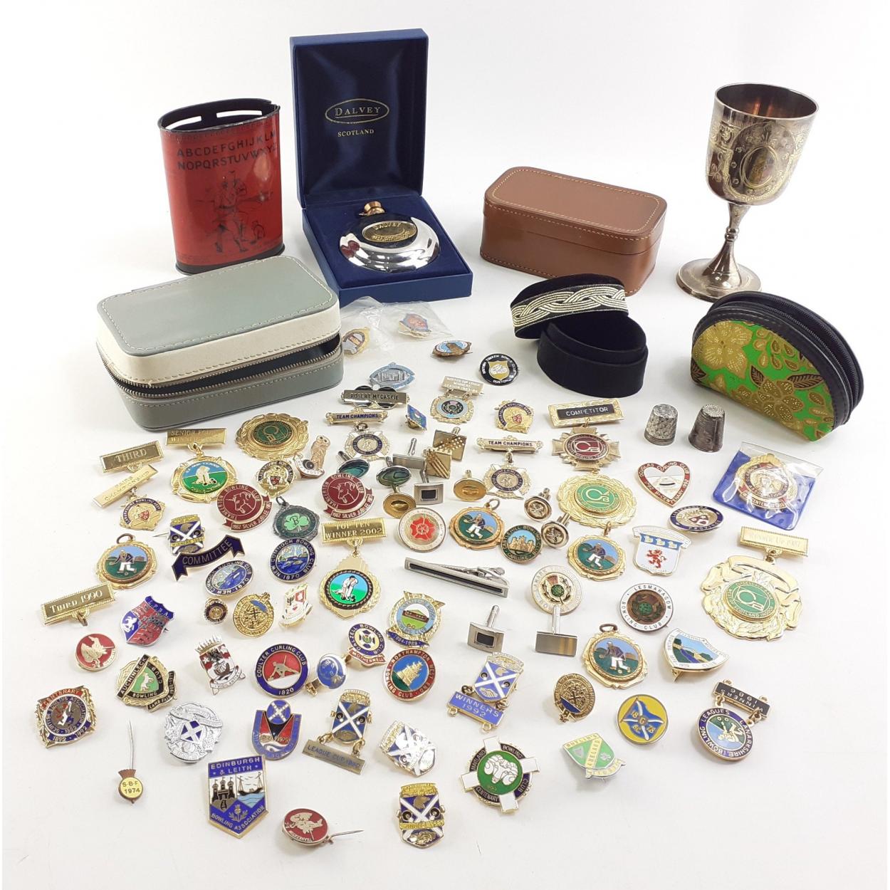 Assorted bowling badges and other items of interest.