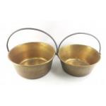 Two vintage brass JAM PANS / Jeely pans in good clean condition. The larger 37cm approx.