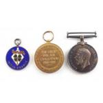 WWI Medal pair of British War Medal and Victory Medal to 187606 Gnr. G. S. Huntley R.A. Comes with an interesting enamel fob 1917-19 France 50 Battery RFA.