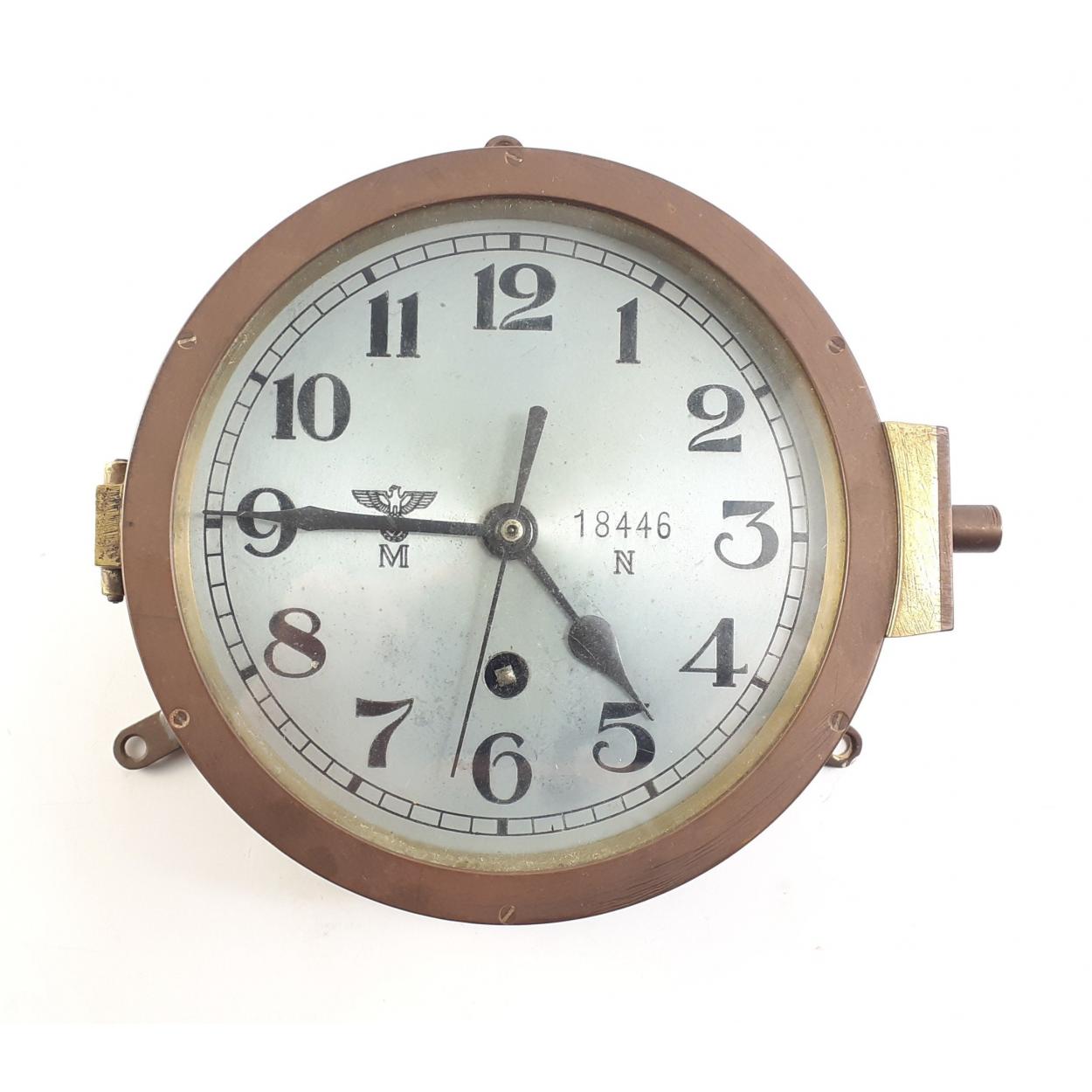 Kreigsmarine WWII style Brass bulkhead clock. M mark Third Reich Eagle mark, numbered 18446.