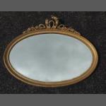A large ornate oval Gesso and gilded framed mirror. Light foxing to plate and one piece missing to the mount. 100cm x 80cm approx.