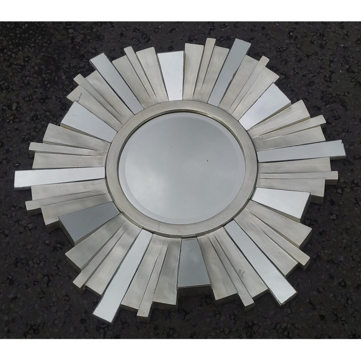 A modern designer ONDATTA circular mirror silvered sun ray design. 910mm diameter.