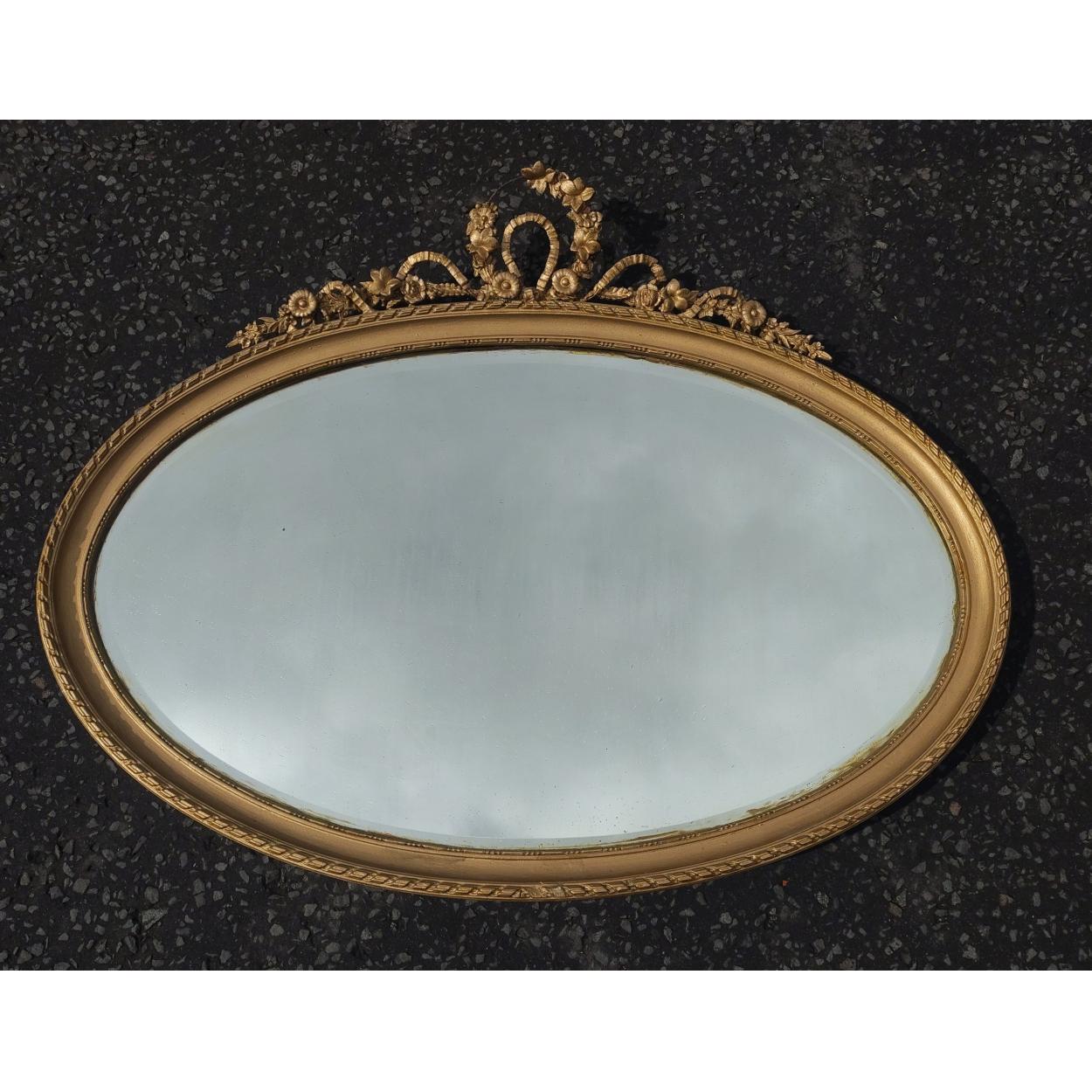 A large ornate oval Gesso and gilded framed mirror. Light foxing to plate and one piece missing to the mount. 100cm x 80cm approx.
