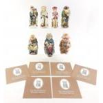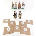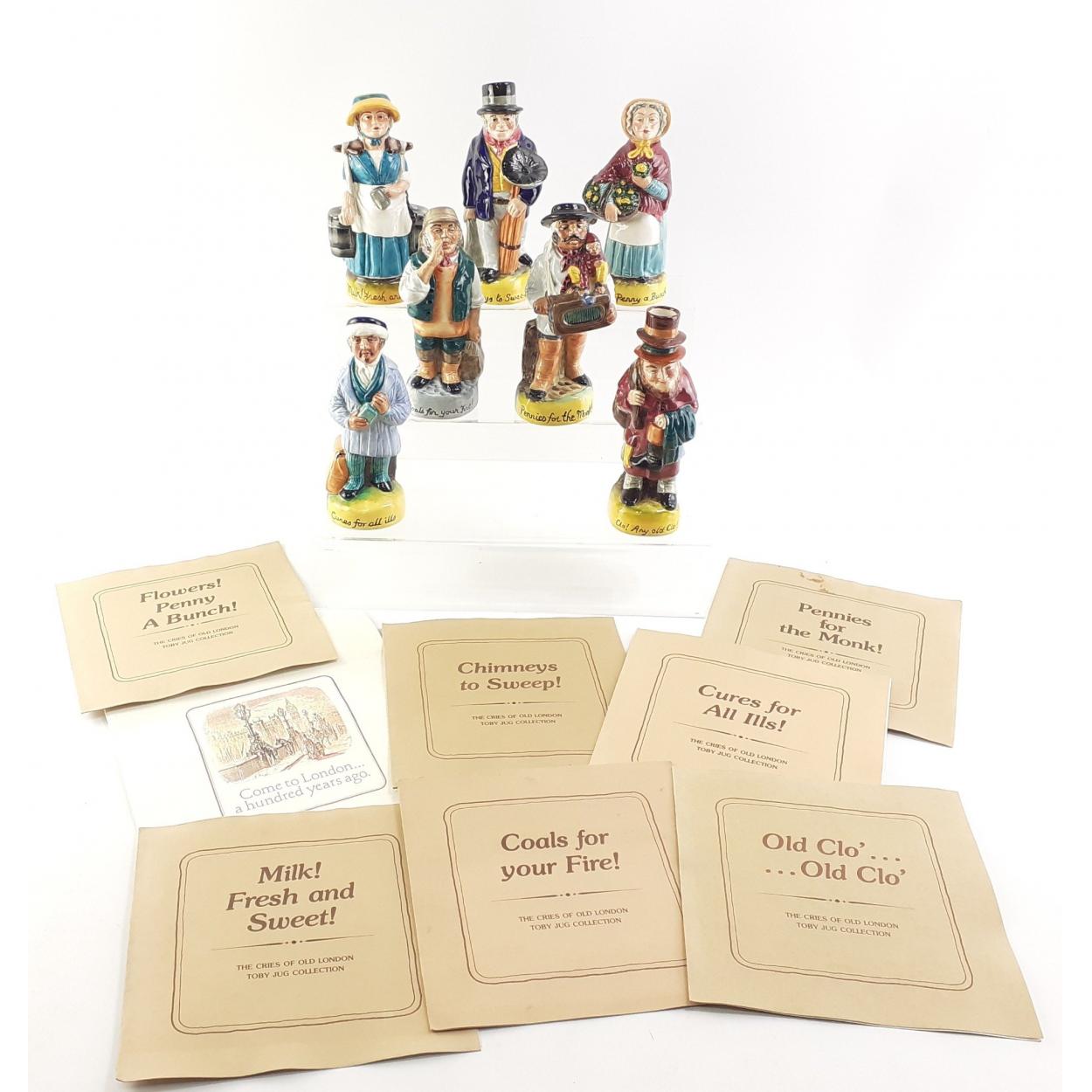 Seven Franklin Porcelain THE CRIES OF OLD LONDON figures with leaflets. Comprising Cimneys to Sweep, Cures for All Ills, Pennies for the Monk, Flowers! Penny A Bunch, Milk! Fresh and Sweet, Coals For Your Fire, Old clo', Old Clo. All pieces are 16cm approx and all pieces in good clean condition. A super set.