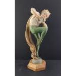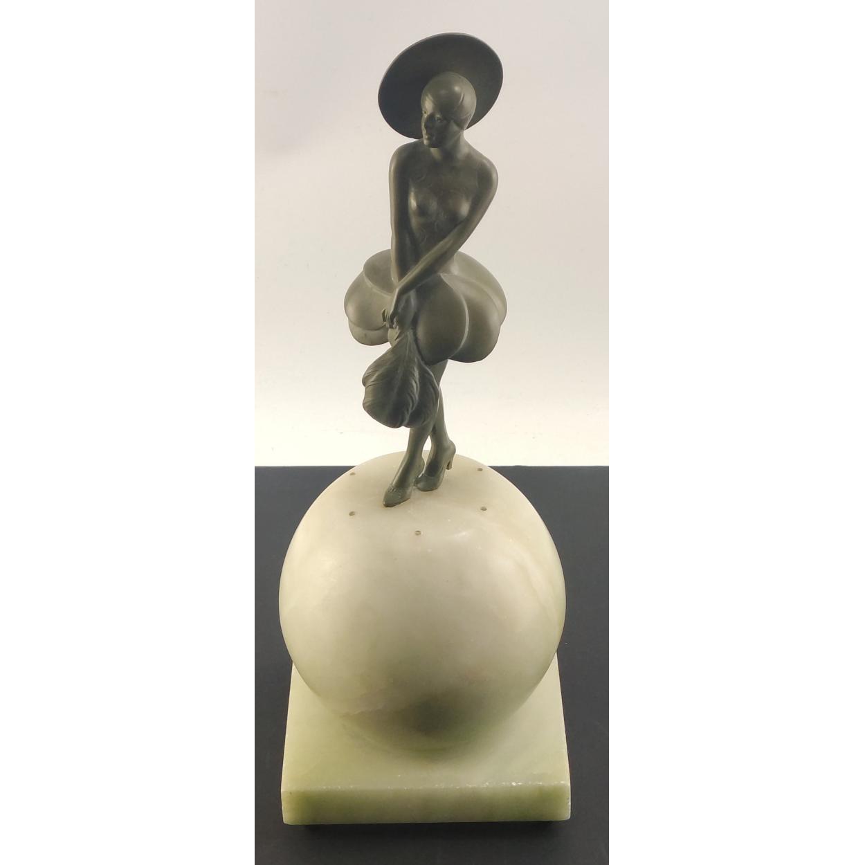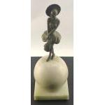 ART DECO figurative scupture of a lady standing on ball on plinth. 38tcm tall.