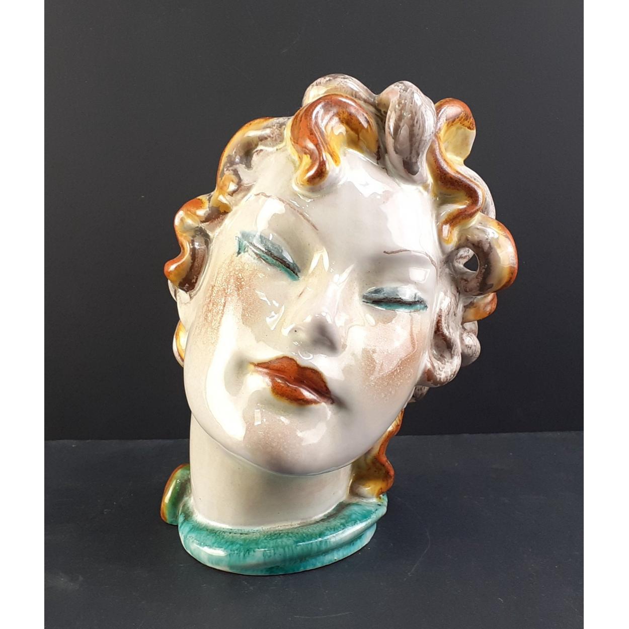 ART DECO style pottery bust of a young lady. Stamped 478 to base. In the style of Goldscheider.