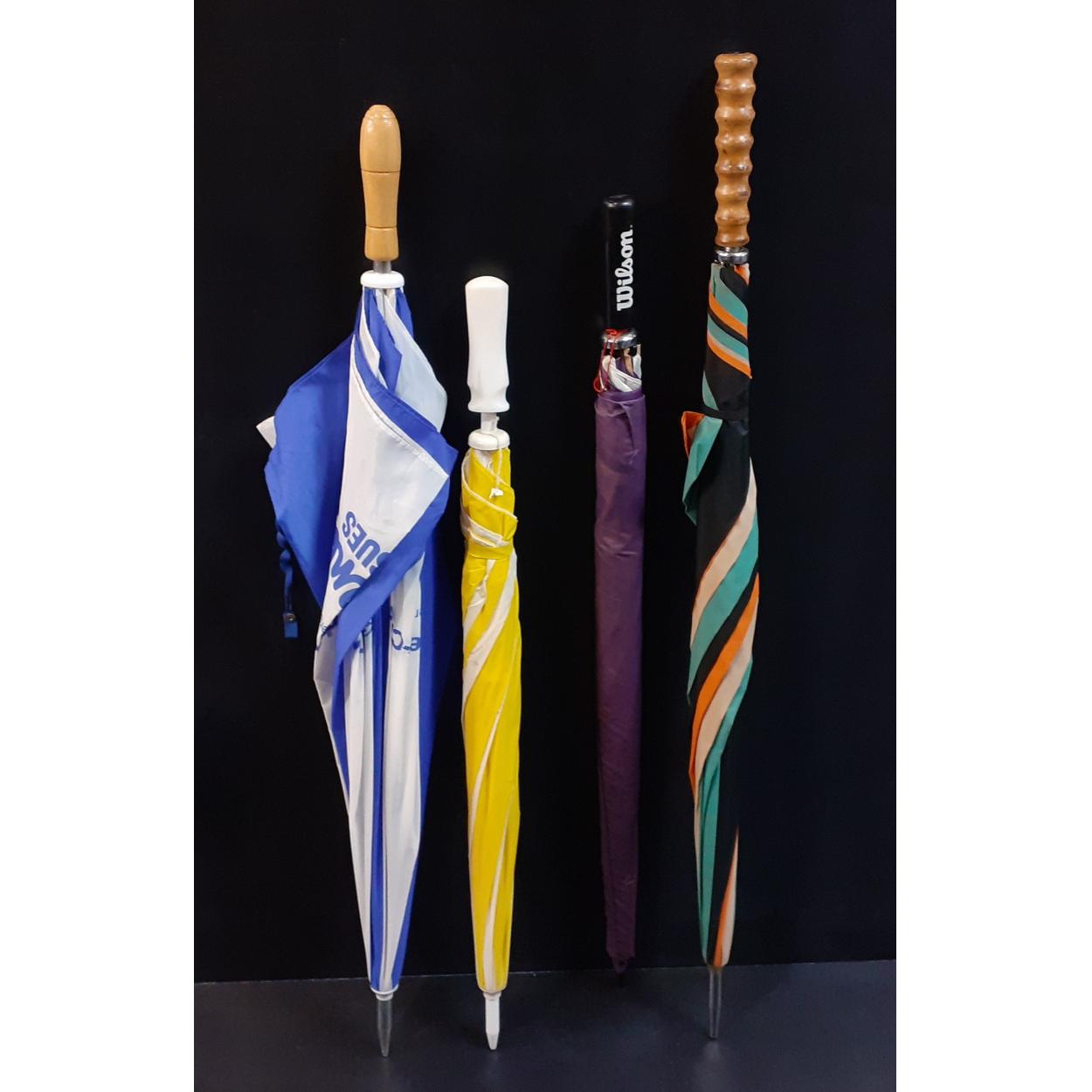 Collection of four multi coloured golfing umbrellas to include Wilson,