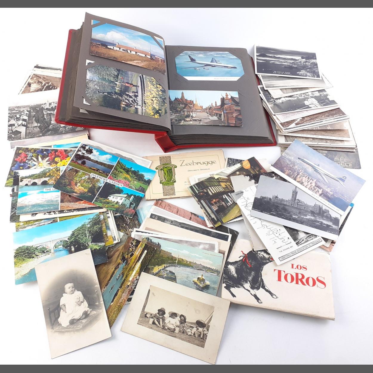 POSTCARDS. An album of older cards and a folder of loose cards. Album mainly coloured cards, folder contains some BOAC airliner cards and some photographic cards of Perth area.