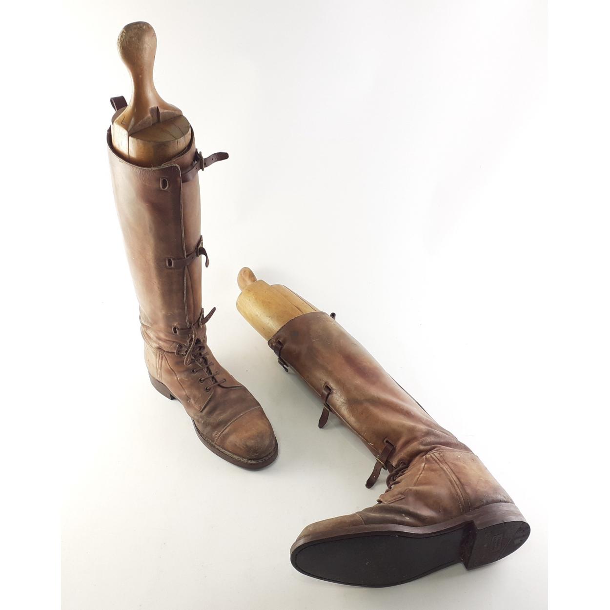 A pair of super vintage CAVALRY boots with stretchers Resoled, no size but feet are roughly 31cm. Straps in good condition, some wadding or wax would be benificial.