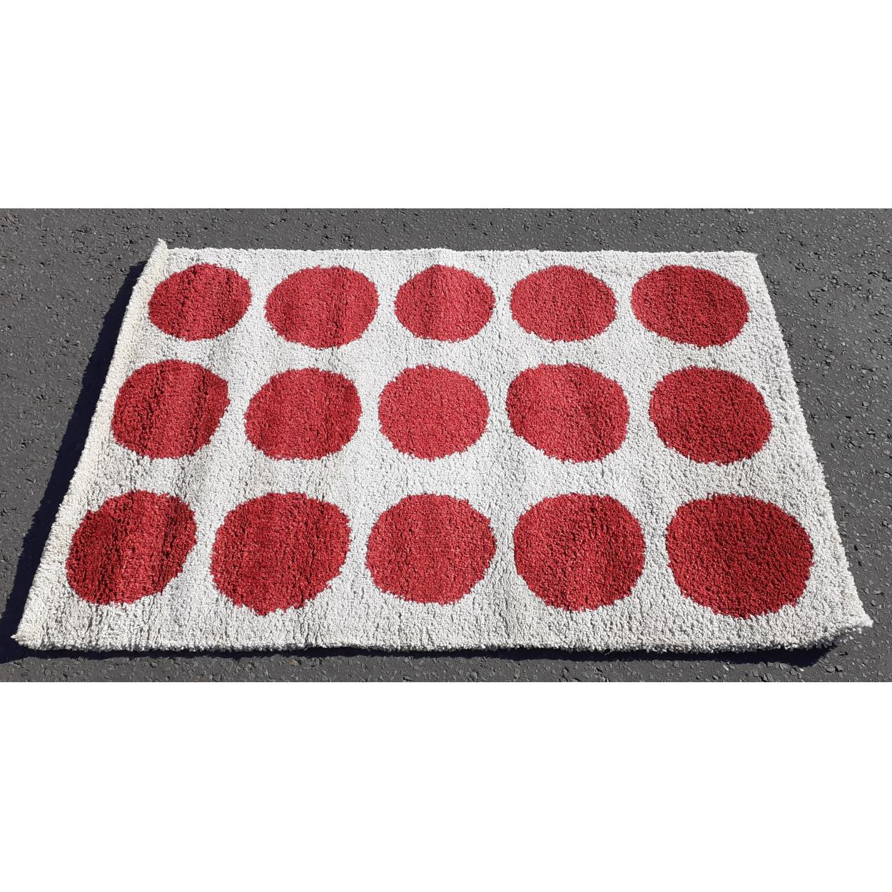 Modern red polka dot cream based carpet measures 270 by 120cm approx. "Brady Dotty rug" label to back