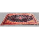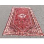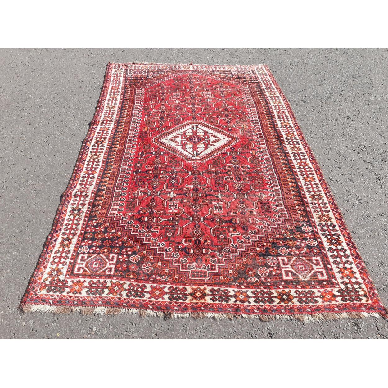 A vintage hand woven carpet with geometric design on red base colour. . 250 x155cm