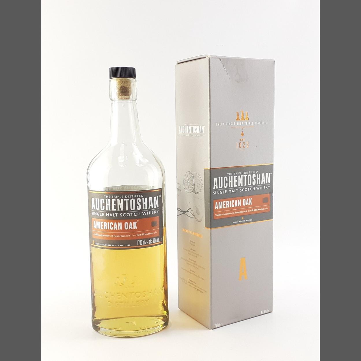 AUCHENTOSHAN American Oak Single Malt Triple distilled in box. 700ml NB bottle is half full.